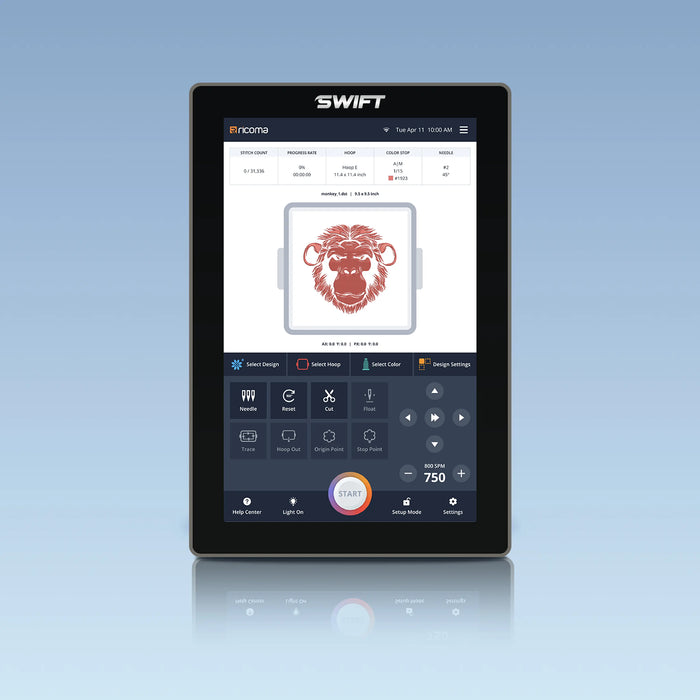 The Swift’s modern touchscreen interface with Wi-Fi and Chroma Embroidery Digitizing Software allows for easy wireless design transfers. With a memory capacity of 100 million stitches or 1,000 designs, you'll have ample space for all your creations. Automatic software updates keep the machine running smoothly, while three color change modes offer flexibility. You can also combine and save multiple designs as a single file, and the built-in file management system helps you stay organized and efficient.
