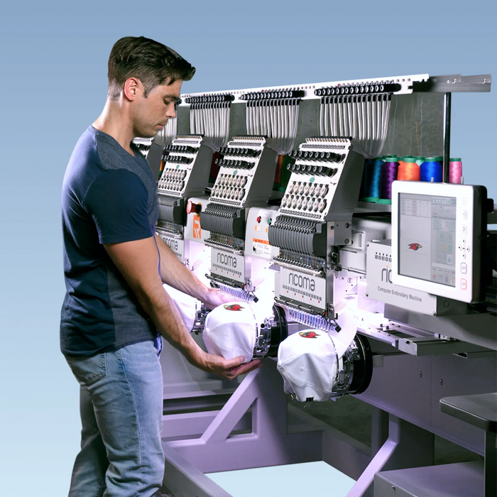 Searching for the best multi-head embroidery machine to grow your business? The Ricoma CHT2 Series offers flexible options in 4, 6, 8, and 12-head models to match any production level. Each machine is packed with 15-needle heads, automatic color change, thread break detection, and a fully responsive 10.1” touchscreen for fast setup and customization. Designed for industrial use, the CHT2 Series supports embroidery on caps, flats, bags, patches, and more—making it a complete solution for custom apparel decorators.