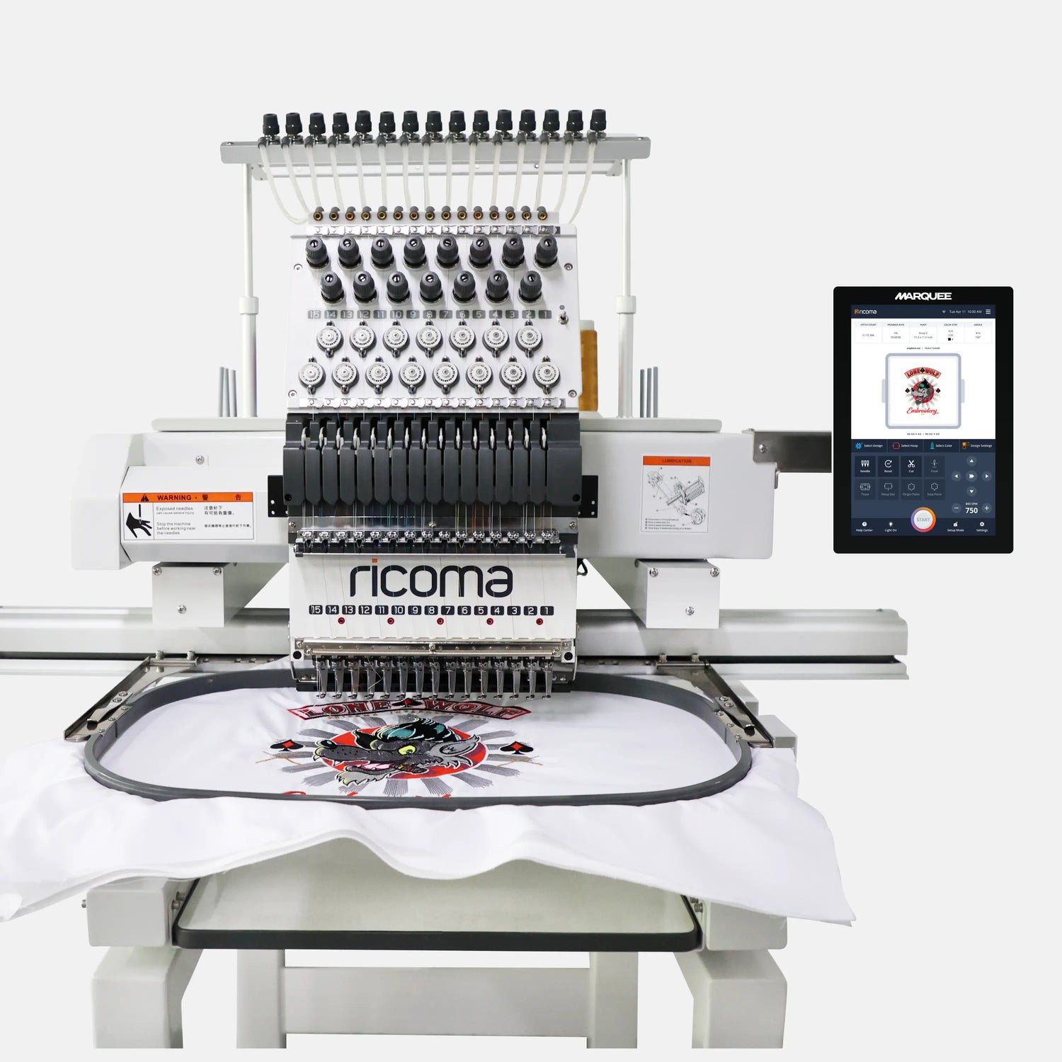Ricoma embroidery machines are available in two limited-time options. Both include steel stand, Chroma software, starter kit, training, and lifetime support.