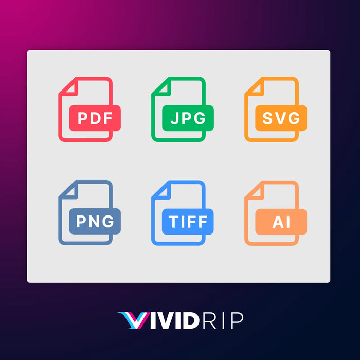 VividRip supports common file formats such as PNG, JPEG, PDF, SVG, AI, and TIFF, ensuring compatibility with a wide range of design software.